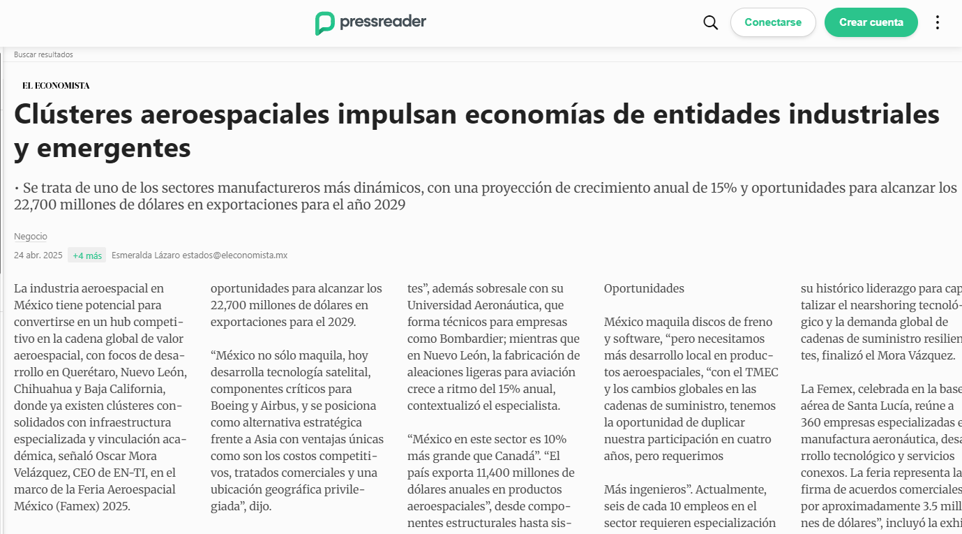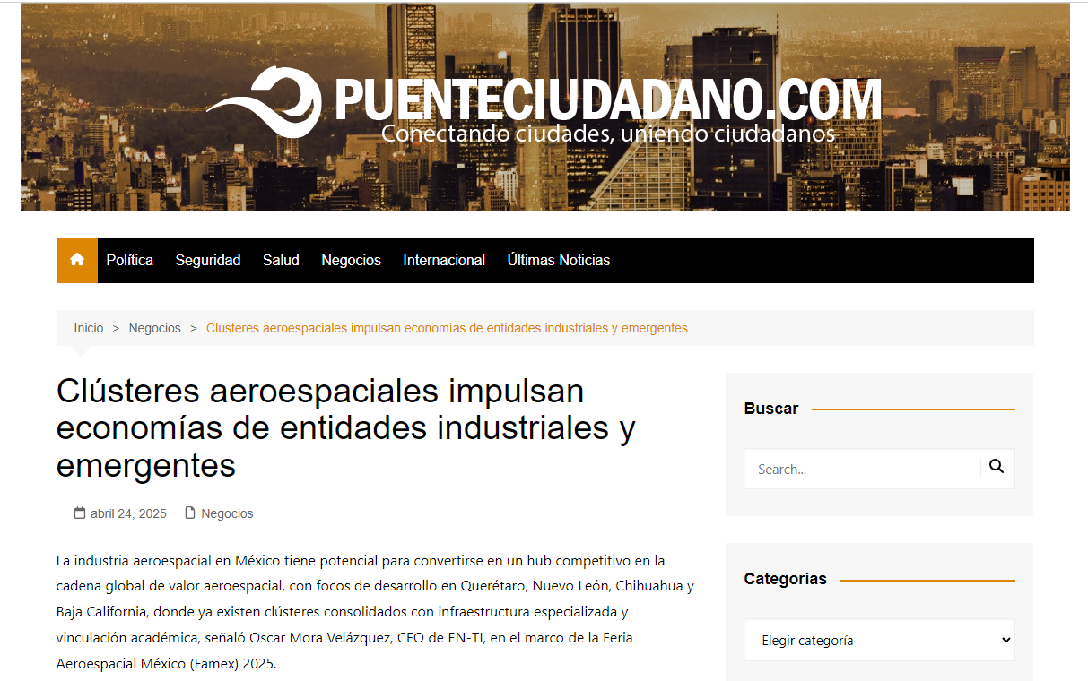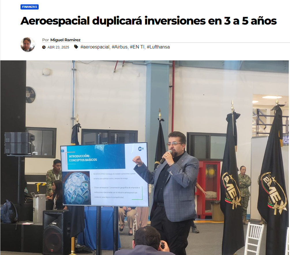 Óscar Mora, CEO de EN-TI, conto que tuvo el honor de participar como conferencista en el evento – impartiendo una ponencia titulada “Nearshoring Aeroespacial: La Oportunidad de México en la Nueva Geopolítica Industrial”...