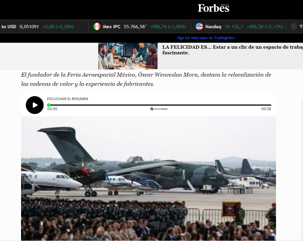 El CEO de EN-TI, Oscar Mora Velázquez, en el marco de la Feria Aeroespacil México (Farmex) se tienen movimientos interesantes en un mercado mundial...