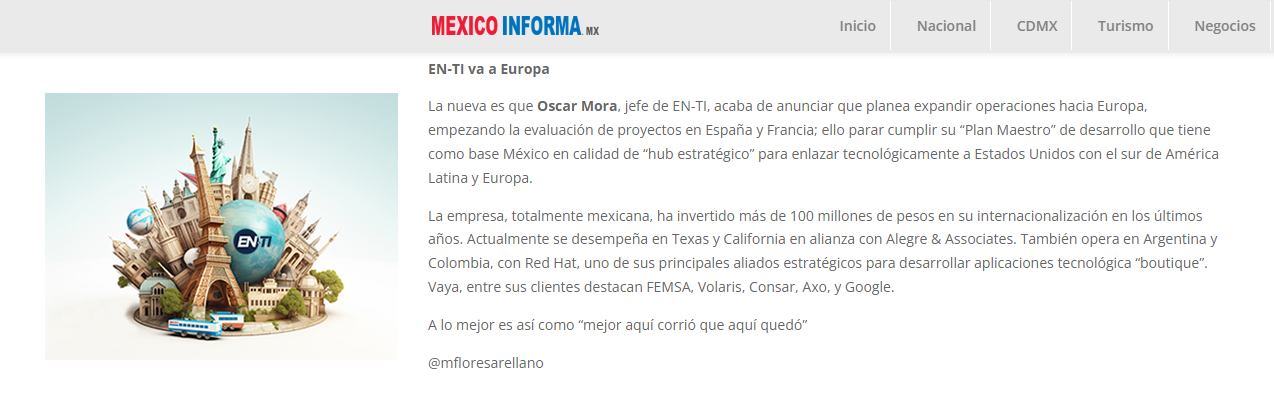 El proceso de internacionalización de EN-TI, se basa en la utilización de la #IA y la interoperabilidad de sus sistemas, dijo su CEO, Óscar Mora Velázquez...