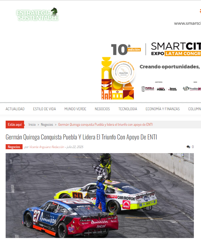 El piloto Germán Quiroga de Car Motion, apoyado por la tecnológica EN-TI, triunfó en la carrera del fin de semana en Puebla, con lo que pasó a los playoffs de la Nascar México Series...