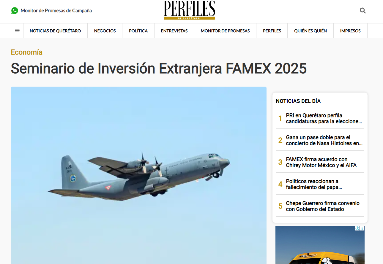 Óscar Mora, CEO de EN-TI, ofrecerá la Conferencia Magistral “Nearshoring Espacial: La oportunidad de México en la nueva Geopolítica Industrial”, en el marco de la Feria Aeroespacial México (FAMEX) 2025, como parte del “Seminario de Inversión Extranjera”...